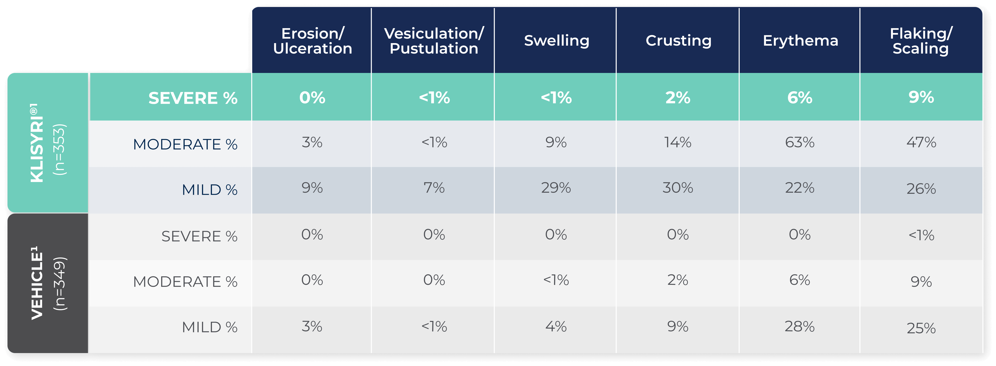 Local skin reactions, including severe reactions (erythema, flaking/scaling, crusting, swelling, vesiculation/pustulation, and erosion/ulceration) in the treated area can occur after topical application of KLISYRI. Occlusion after topical application of KLISYRI is more likely to result in irritation. Avoid use until skin is healed from any previous drug, procedure, or surgical treatment.