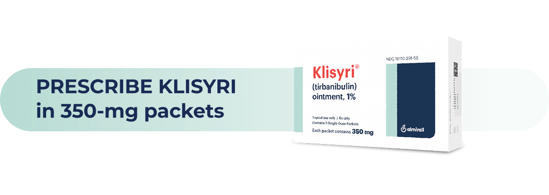 KLISYRI is a microtubule inhibitor indicated for the topical field treatment of actinic keratosis on the face or scalp.